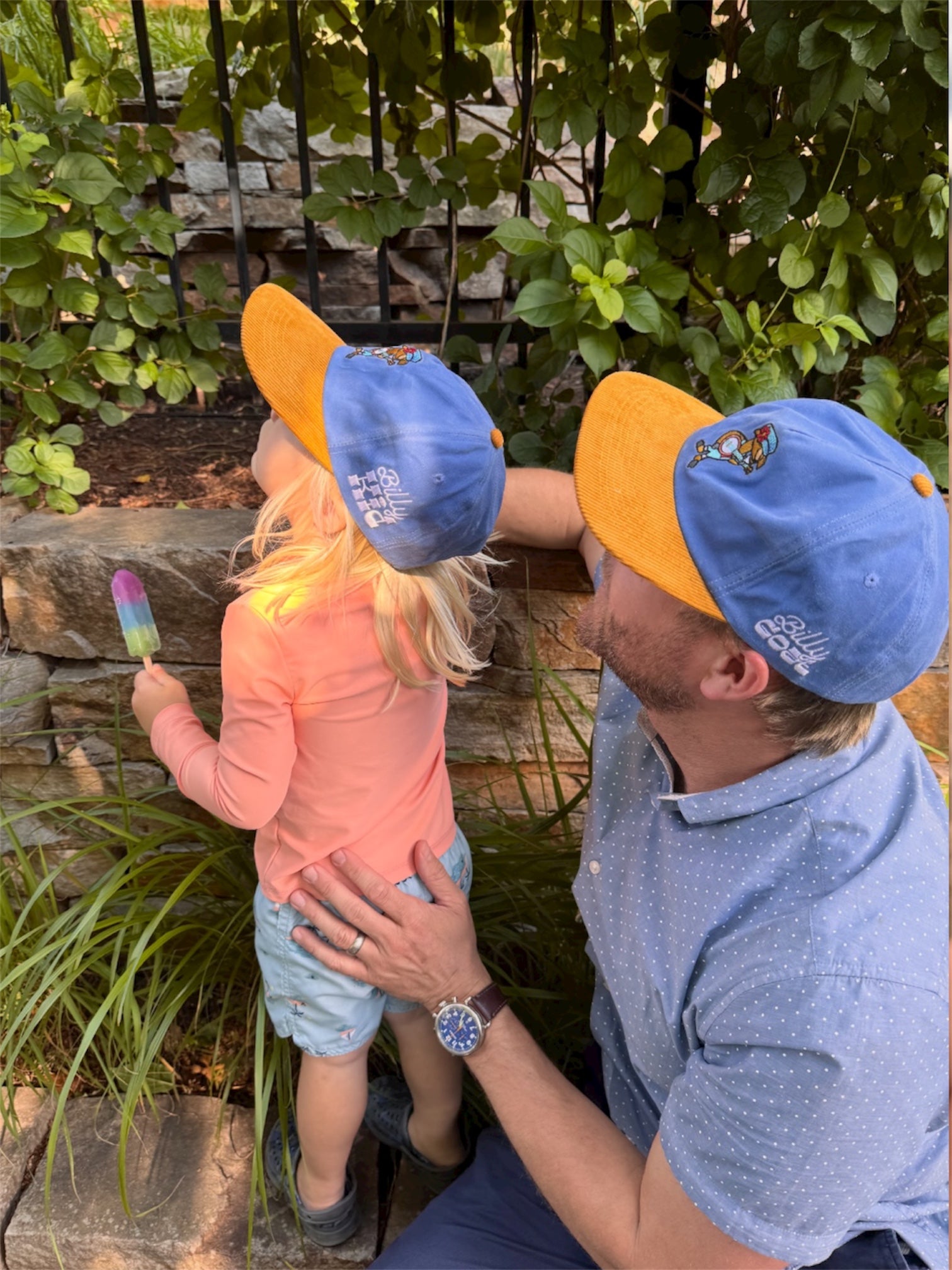One of our two kids hats available. Twin with your little one by snagging a matching Billy “Goat” adult hat. This hat is built for play, with a worn-in look and feel, built from a water-resistant duck canvas. Finished with a Billy Goat banjo front embroidery and a side “Billy Kid” embroidery. Twin with your little one by pairing it with the adult Billy “Goat” in blue waxed canvas or peach ripstop.