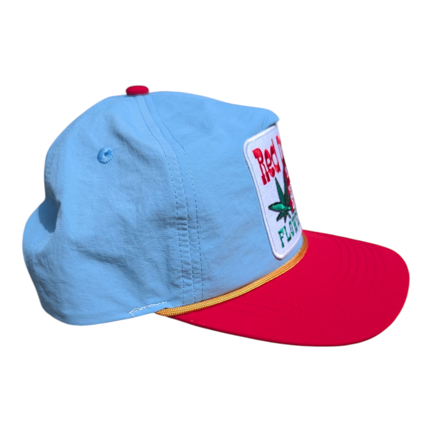 Throwback lightweight style with a breathable, two-tone light blue and red nylon build made for all-day wear. Water and stain resistant for versatile outdoor use. Features high-quality direct embroidery with a crisp, detailed finish. The unstructured crown offers a relaxed fit, finished with a red snapback closure for easy adjustability.