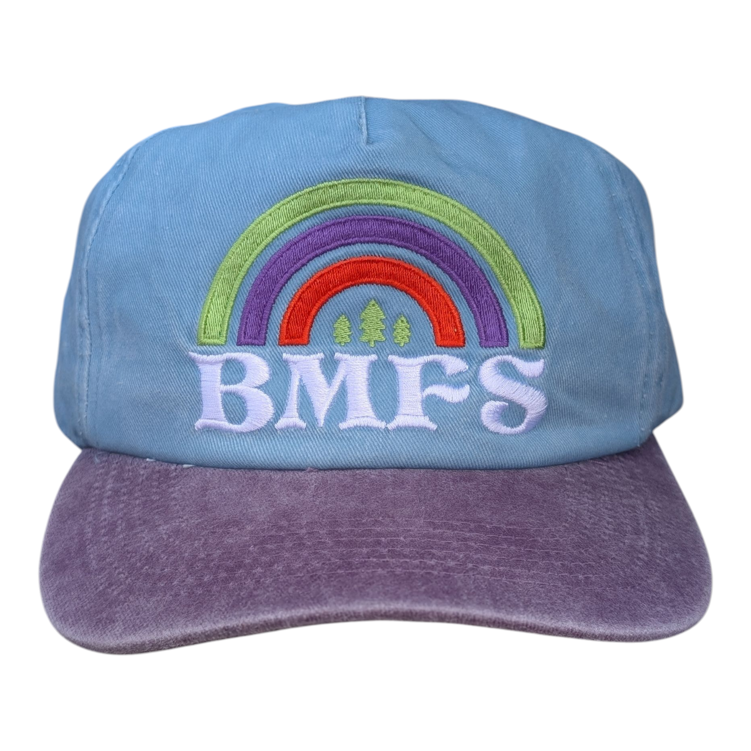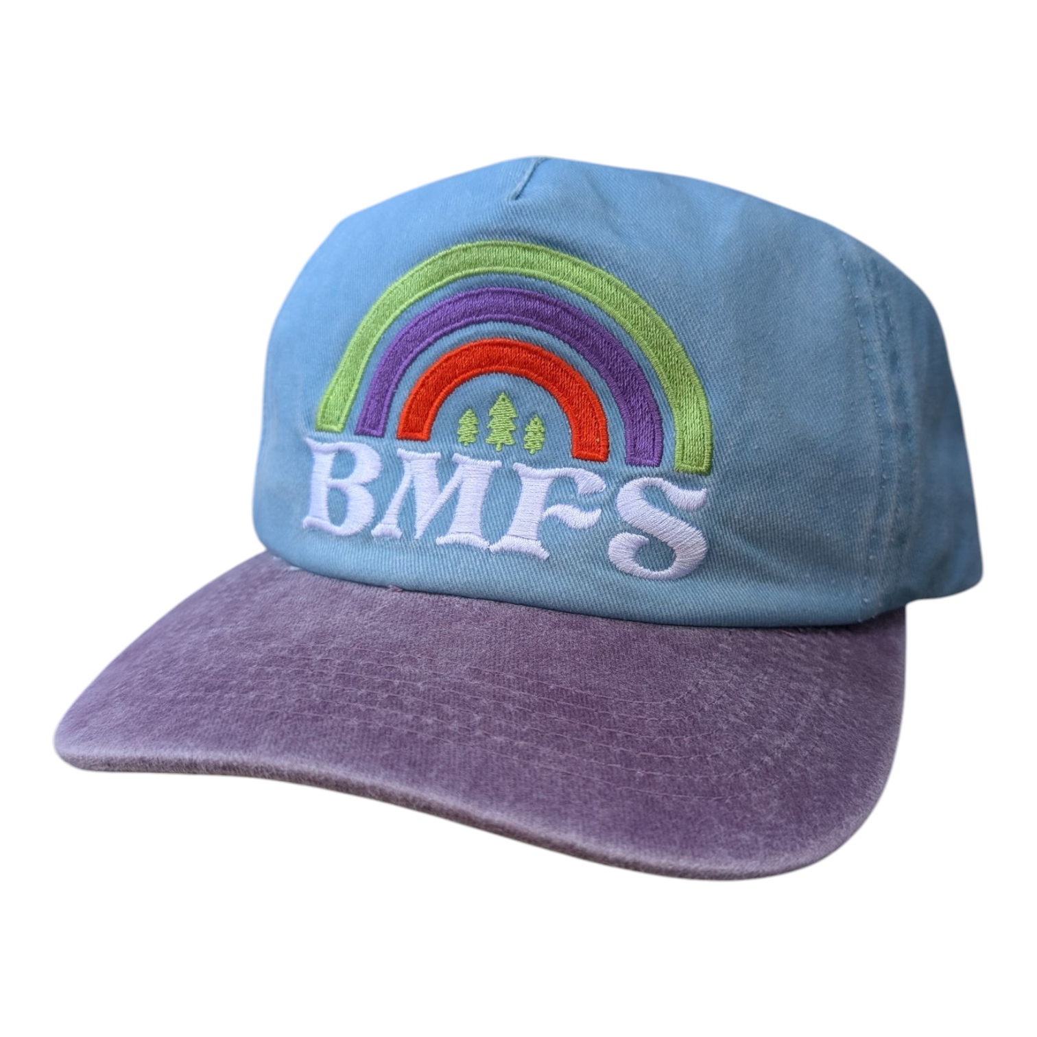 Vintage vibe with this 5-panel hat crafted from soft, washed cotton twill. The light blue and purple combo sets off the detailed rainbow embroidery. The soft structured, mid-profile crown delivers a comfortable fit.