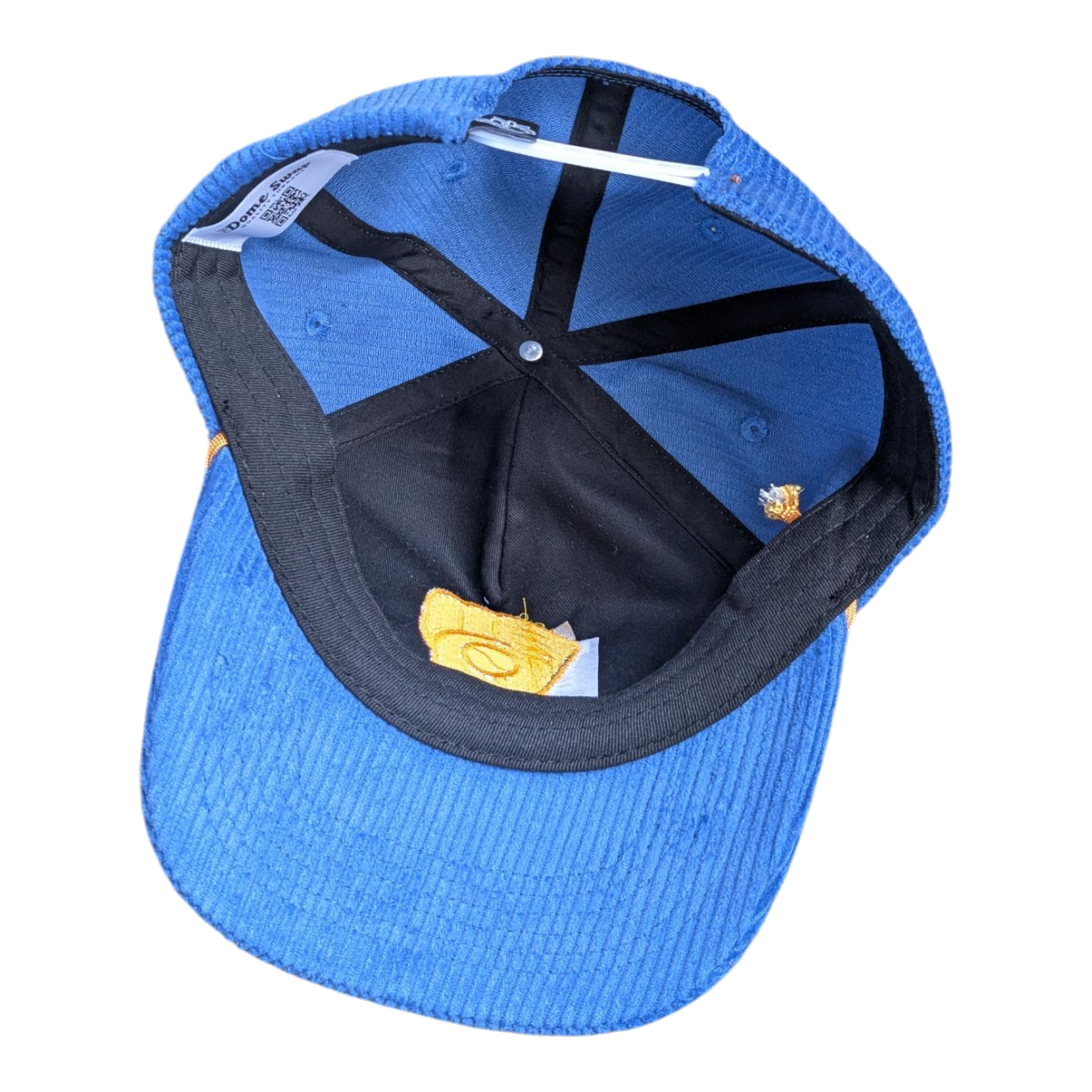 Classic vintage style, crafted from ultra-soft 100% blue cotton corduroy for a broken-in, comfortable feel. Features high-quality direct embroidery with crisp detail. Built with a relaxed 5-panel unstructured crown and a white snapback closure for easy adjustment.