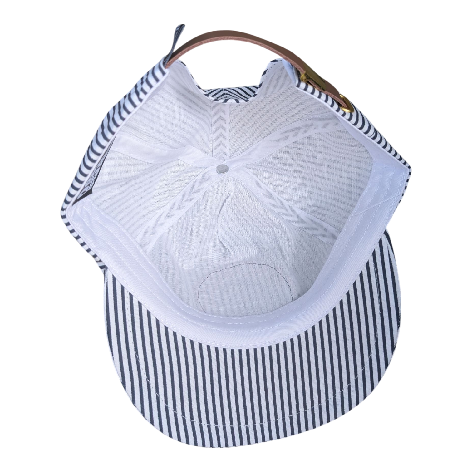 Classic 5-panel design crafted from blue hickory striped canvas for a timeless, worn-in look. The unstructured crown offers a relaxed fit, finished with a brown leather strap back for easy adjustment.