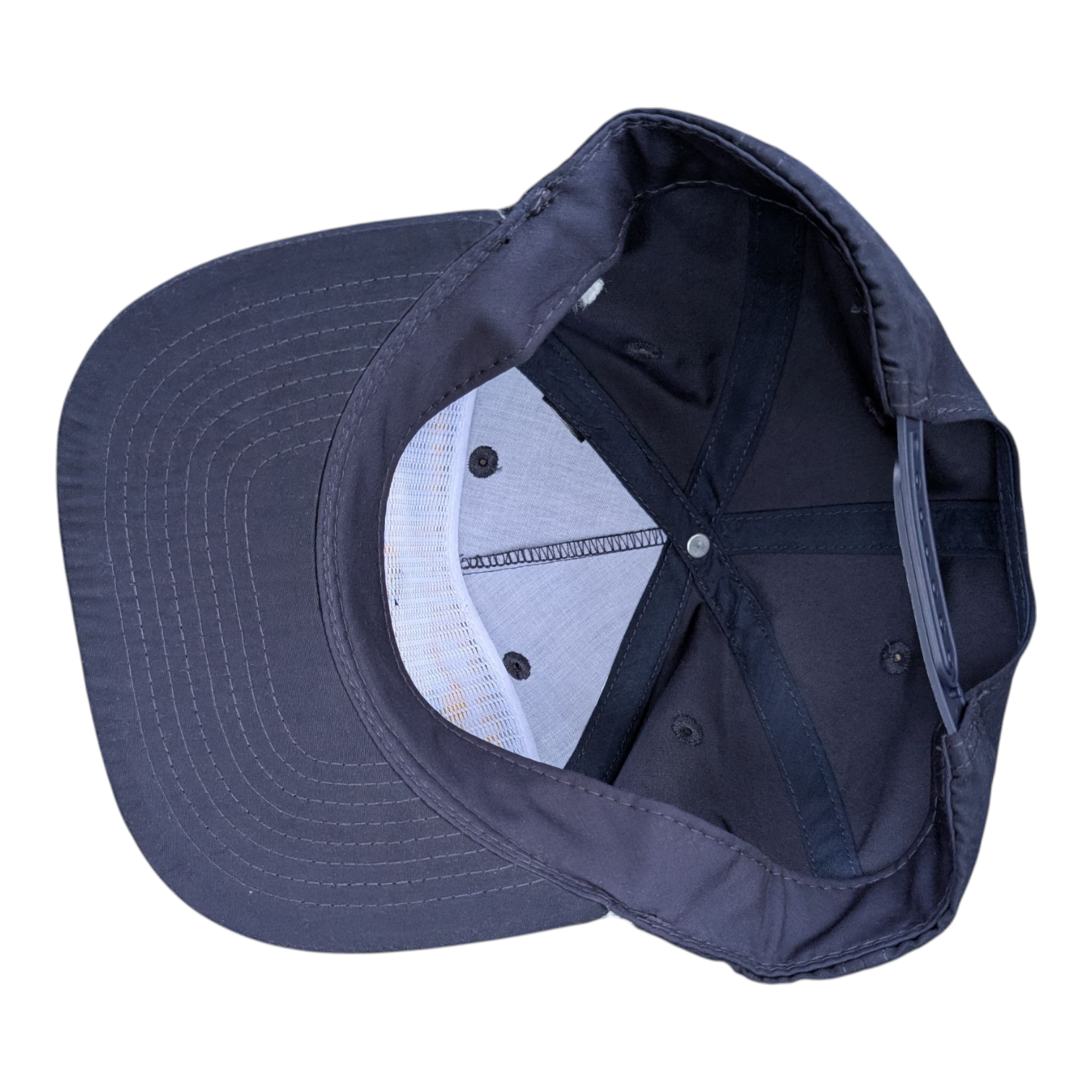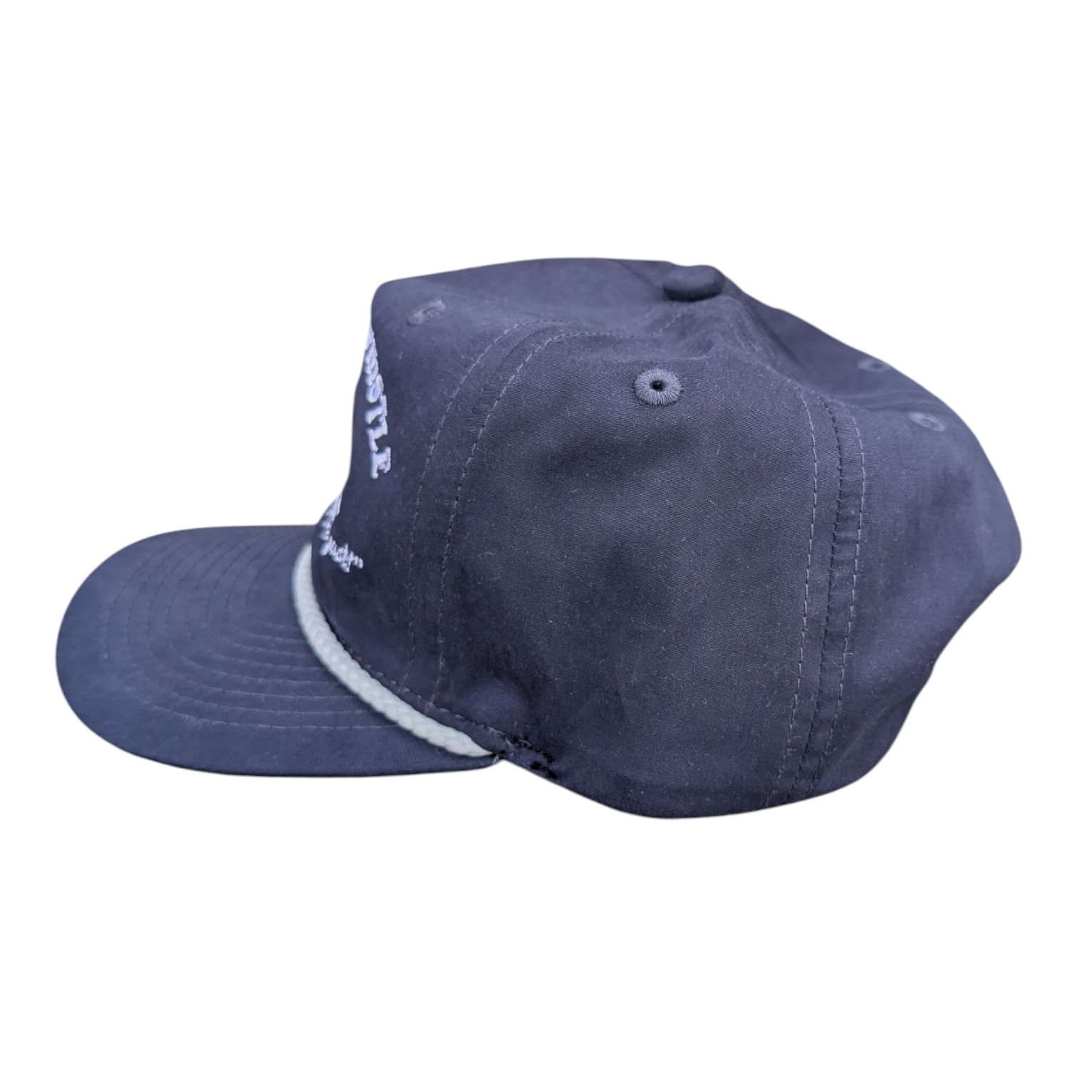 Vintage-inspired style crafted from a lightweight, breathable navy nylon blend built for all-day wear. Features a clean white brim cord for a subtle pop of contrast and high-quality direct embroidery with a crisp, detailed finish. The unstructured crown provides a relaxed fit, finished with a matching snapback closure for easy adjustability.
